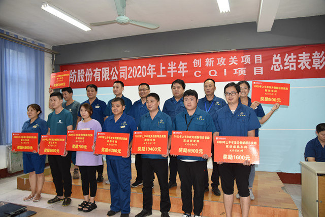 在CQI項目改進方面,公司展開CQI項目共計15項,在7項完成并受獎的項目中,4項超目標完成,實現(xiàn)收益303.8萬元。其中,花布車間完成并受獎的是“減少改漿,提高一次成功率”項目,面三車間完成并受獎的是“降低打底機疵布降等”項目、“提升5.11三防一等品率”項目,動力分公司完成并受獎的是“提高熱油機組經濟發(fā)電量”項目,水處理一車間完成并受獎的是“提高生化處理降低藥劑成本”項目,水處理二車間完成并受獎的是“降低次氯酸鈉噸水處理費用”項目,熱力二車間完成并受獎的是“改善熱水平衡提升換熱效率”項目。