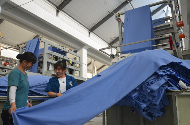 公司新面料印染生產(chǎn)線產(chǎn)品下機 向建黨百年獻禮