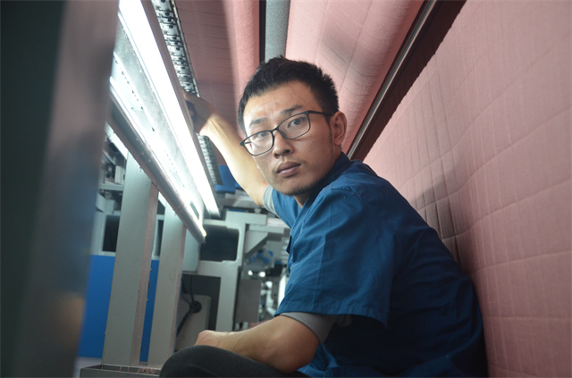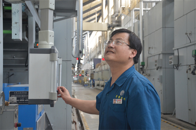 面料車間4號打底機的紀建峰,進入公司已10年有余,從事過多個機臺的操作工種。