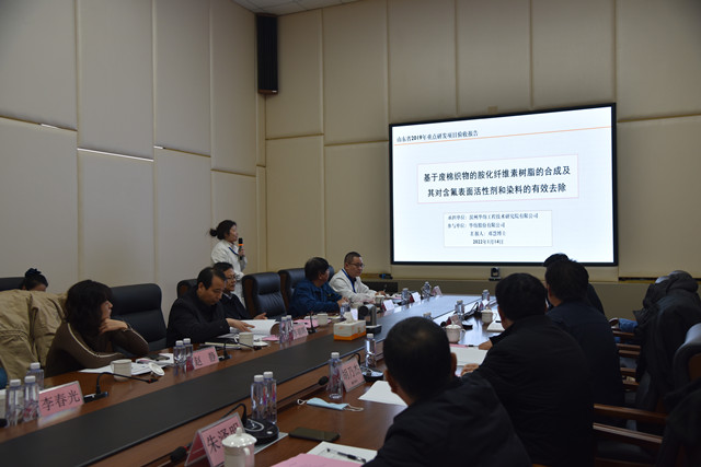 導(dǎo)讀:1月14日,山東省重點(diǎn)研發(fā)計(jì)劃(公益類)項(xiàng)目“基于廢棉織物的胺化纖維素樹脂的合成及其對(duì)含氟表面活性劑和染料的有效去除”項(xiàng)目驗(yàn)收會(huì)議在公司舉行。