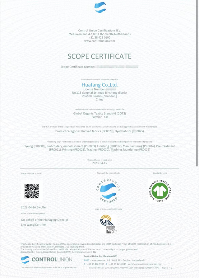 公司積極響應國家發展改革委、商務部、工業和信息化部《關于加快推進廢舊紡織品循環利用的實施意見》,根據全球有機紡織品GOTS/OCS及全球回收標準GRS等國際相關標準, 2022年于3月份通過權威機構的現場審核,順利取得GOTS/OCS/GRS證書。