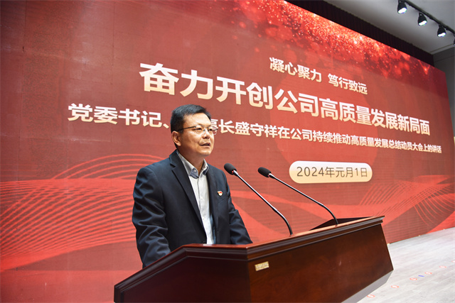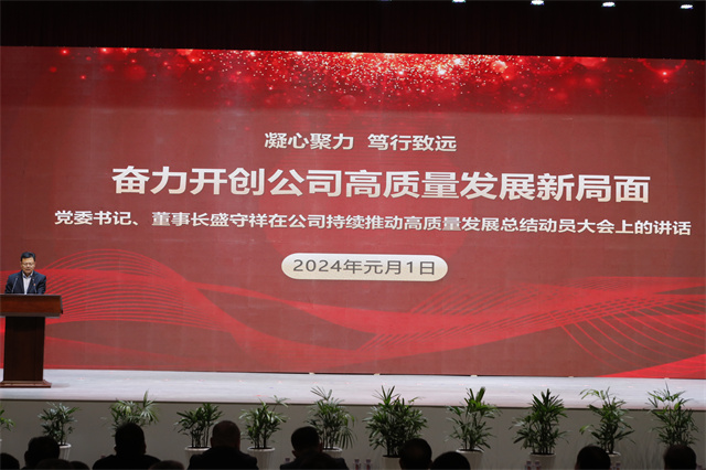 會議最后,盛守祥作了題為《凝心聚力 篤行致遠 奮力開創公司高質量發展新局面》的工作報告。報告全面總結梳理了公司過去一年的工作,深刻剖析了實際工作中的問題,為新階段工作提出了指導性意見。2024年,公司主要工作概括為四個方面:一是堅持黨建引領,夯實政治保障;二是堅持綠色發展,抓好環保安全;三是以架構之變、價值作風之變、績效之變、造血止血之變、團隊之變開啟變革之年,全面突破在望;四是在“產業鏈、資金鏈、人才鏈、創新鏈、供應鏈”上持續發力,共建百億家園。