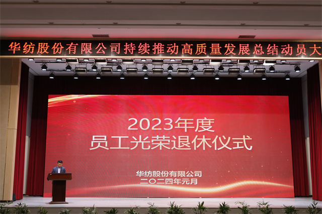 2024年是一個充滿機遇和挑戰的年份,在新的一年里,全體華紡人要共同努力,以“華紡是世界的、世界是華紡的”博大胸懷,提質增效,打造“華紡速度”;練好內功,鑄造“華紡力量”;集思廣益,鍛造“華紡智慧”;眾志成城,塑造“華紡精神”;凝心聚力,篤行致遠,奮力開創公司高質量發展新局面。