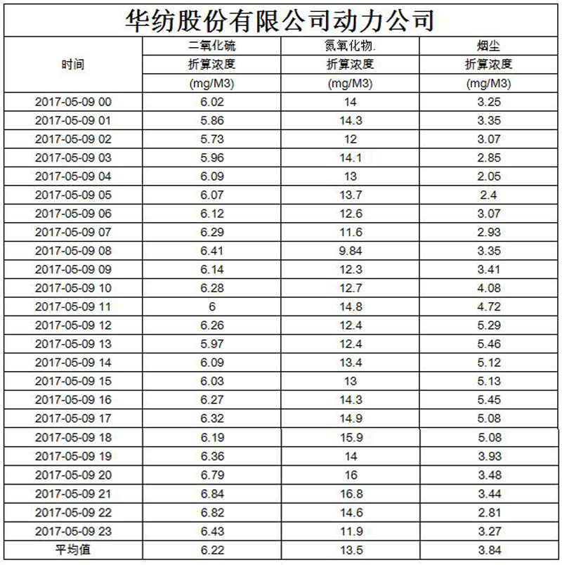 煙氣排放數據信息公開2017.5.9數據