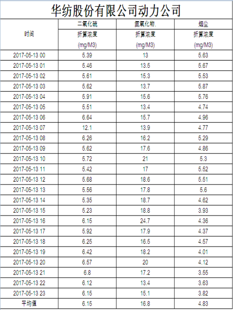 煙氣排放數據信息公開2017.5.13數據