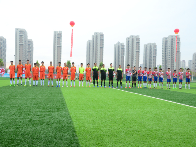 公司作為濱城區第六中學足球代表隊的服裝提供商,受邀參加了本次活動的足球裝備展。當天開幕式前,公司黨委書記、董事長王力民向參加活動的名宿輔導團成員及省、市、區的領導等介紹了公司整體發展情況和研發、生產各類校服及體育運動服裝情況。開幕式結束后,由濱城六中代表隊和韓國首爾天安FMC俱樂部代表隊進行了本次邀請賽的首場比賽。