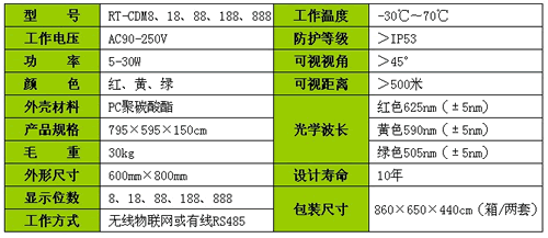 RT-CDM實時通訊式單紅倒計時器,采用隔離RS485和無線Mesh網(wǎng)構(gòu)成局域網(wǎng)接入,提供255個節(jié)點、250K速率、1.5公里距離和筆畫損壞偵測,針對實時性、可靠性、擴展性等需求而精心設(shè)計。嚴格執(zhí)行道路交通信號倒計時顯示器(GA/T 508-2004)相關(guān)標準。